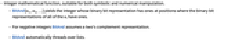 BitOr BitXor BitNot BitGet And IntegerDigits DigitCount CellularAutomaton Pick