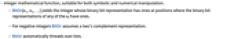 - BitOr[n1,n2,…] yields the integer whose binary bit representation has ones at positions where the binary bit representations of any of the ni have ones.