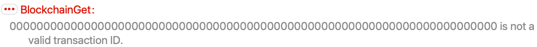 If you give a nonexistent transaction ID, BlockchainGet will return $Failed:
