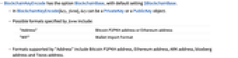 "Address" Bitcoin P2PKH address or Ethereum address "WIF" Wallet Import Format - Formats supported by "Address" include Bitcoin P2PKH address, Ethereum address, ARK address, bloxberg address and Tezos address.