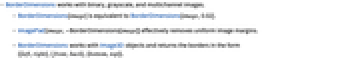 - BorderDimensions works with binary, grayscale, and multichannel images.