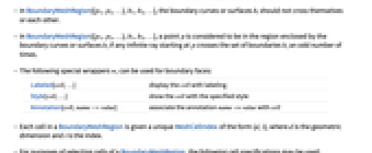 - BoundaryMeshRegion has the same options as Graphics for embedding dimension two, and the same options as Graphics3D for embedding dimension three, with the following additions and changes: