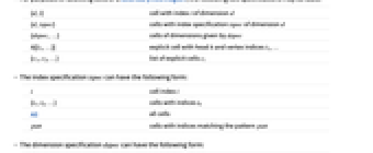 i cell index i {i1,i2,…} cells with indices ik All all cells patt cells with indices matching the pattern patt - The dimension specification dspec can have the following form: