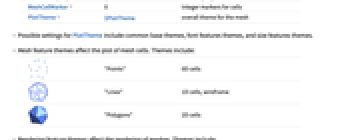 - Mesh feature themes affect the plot of mesh cells. Themes include: