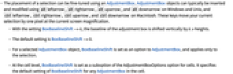 - The placement of a selection can be fine-tuned using an AdjustmentBox. AdjustmentBox objects can typically be inserted and modified using