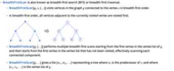 - BreadthFirstScan[g,s,{…}] visits vertices in the graph g connected to the vertex s in breadth-first order.