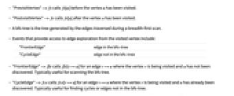 "FrontierEdge" edge in the bfs-tree "CycleEdge" edge not in the bfs-tree - "FrontierEdge"->ffe calls ffe[vu] for an edge vu where the vertex v is being visited and u has not been discovered. Typically useful for scanning the bfs-tree.