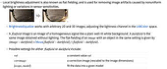 - Local brightness adjustment is also known as flat fielding, and is used for removing image artifacts caused by nonuniform lighting or variations in sensor sensitivities.