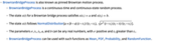 - BrownianBridgeProcess can be used with such functions as Mean, PDF, Probability, and RandomFunction.