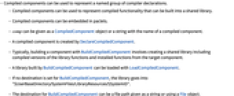 - Compiled components can be used to represent compiled functionality that can be built into a shared library.