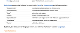 valuePlaced[spec,location] place the markers in spec at location - BulletGauge supports the following locations inside Placed for GaugeMarkers and ReferenceMarkers: