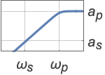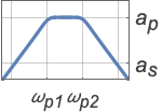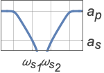 {"Bandpass",{ωs1,ωp1,ωp2,ωs2},{as,ap}} full filter specification - Bandstop filter specifications: