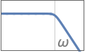 A symbolic lowpass Butterworth filter of order 3 with a cutoff frequency ω: