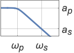 {"Highpass",{ωs,ωp},{as,ap}} full filter specification - Bandpass filter specifications:
