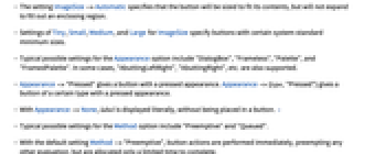 - Settings of Tiny, Small, Medium, and Large for ImageSize specify buttons with certain system-standard minimum sizes.