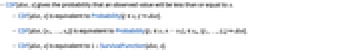 - CDF[dist,x] is equivalent to 1-SurvivalFunction[dist,x].