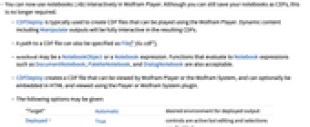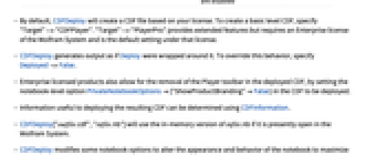 - CDFDeploy modifies some notebook options to alter the appearance and behavior of the notebook to maximize its usability when deployed. For example, editing content outside of interactive interfaces is disabled, and cell brackets are hidden.