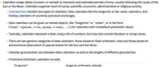 - Calendar granularities vary between date calendars, as well as the lengths of different granularities.