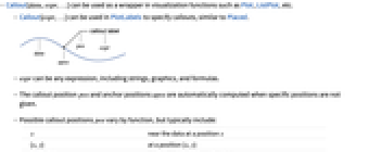 - Callout[data,expr,…] can be used as a wrapper in visualization functions such as Plot, ListPlot, etc.