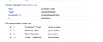 None no marker is used "name" use named marker Arrowheads[…] arrowhead specification g expression g - The named markers "name" are: