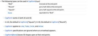 - In 2D, the default is CapForm["Square"]. In 3D, the default is CapForm["Round"].