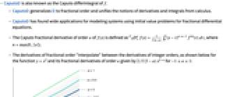 - CaputoD generalizes D to fractional order and unifies the notions of derivatives and integrals from calculus.