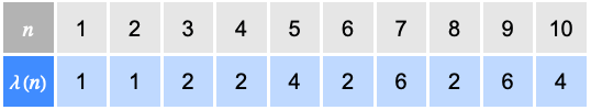 Wolfram Research (1999), CarmichaelLambda, Wolfram Language function, https://reference.wolfram.com/language/ref/CarmichaelLambda.html (updated 2018).