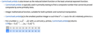 - CarmichaelLambda is also known as the reduced totient function or the least universal exponent function.