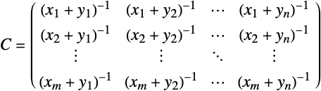 - Given generating vectors x and y, the resulting Cauchy matrix