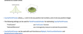 "FindClusters" use FindClusters function "MethodOfMoments" use a homogeneity measure to estimate the parameters - CauchyPointProcess can be used with such functions as RipleyK, PointCountDistribution and RandomPointConfiguration.