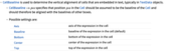 - CellBaseline is used to determine the vertical alignment of cells that are embedded in text, typically in TextData objects.