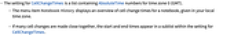 - If many cell changes are made close together, the start and end times appear in a sublist within the setting for CellChangeTimes.