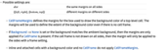 - If Background->None is set or the background matches the ambient background, then the margins are only applied if a CellFrame is present. If the cell frame is not drawn on all sides, then the margin will only be applied to the sides with a frame setting.