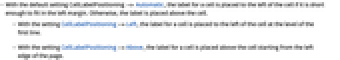 - With the default setting CellLabelPositioning -> Automatic, the label for a cell is placed to the left of the cell if it is short enough to fit in the left margin. Otherwise, the label is placed above the cell.