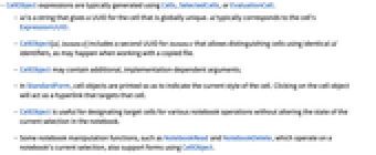 - CellObject[id,instance] includes a second UUID for instance that allows distinguishing cells using identical id identifiers, as may happen when working with a copied file.