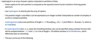 , where m is Length[list]. - In CepstrogramArray[list,n,d,wfun], the smoothing window wfun can be specified using a window function that will be sampled between