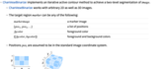 tend to be large. - ChanVeseBinarize iteratively minimizes a functional that is a weighted sum of the contour length, the enclosed area, and the deviation between the image and the two-level segmentation.