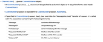 - In ChannelListen[channel,…], channel can be specified as a channel object or in any of the forms used inside ChannelObject.