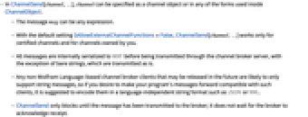 - All messages are internally serialized to WXF before being transmitted through the channel broker server, with the exception of bare strings, which are transmitted as is.