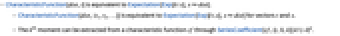 - CharacteristicFunction[dist,t] is equivalent to Expectation[Exp[ t x],xdist].