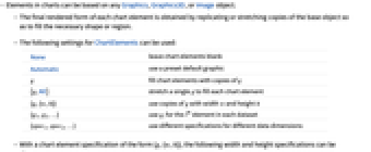 None leave chart elements blank Automatic use a preset default graphic g fill chart elements with copies of g {g,All} stretch a single g to fill each chart element {g,{w,h}} use copies of g with width w and height h {g1,g2,…} use gi for the i