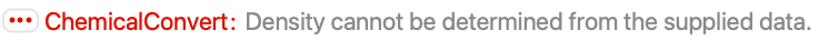 "Amount" amount of substance "AtomCount" number of atoms "Chemical" chemical object "Mass" mass "MoleculeCount" number of molecules "Quantity" quantity object "Volume" volume - ChemicalInstance[chemical,assoc]["prop"] will return the value for the specified property in assoc.