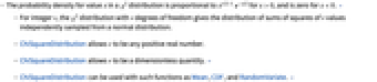 distribution with ν degrees of freedom gives the distribution of sums of squares of ν values independently sampled from a normal distribution. - ChiSquareDistribution allows ν to be any positive real number.