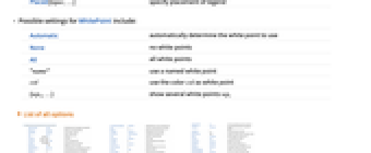 inputPlaced[lspec,…] specify placement of legend - Possible settings for WhitePoint include:
