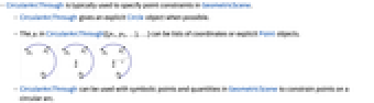 - CircularArcThrough is typically used to specify point constraints in GeometricScene.