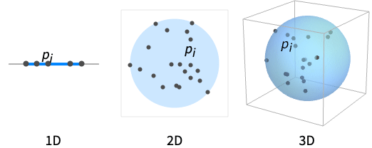 gives a ball with minimal radius that encloses the points p1, p2, ….