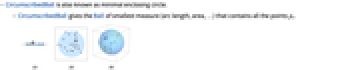 - CircumscribedBall gives the Ball of smallest measure (arc length, area, …) that contains all the points pi.