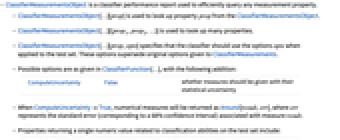 - ClassifierMeasurementsObject[…][prop] is used to look up property prop from the ClassifierMeasurementsObject.