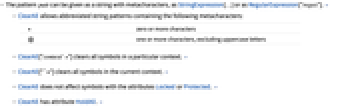 - ClearAll allows abbreviated string patterns containing the following metacharacters: