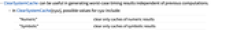 "Numeric" clear only caches of numeric results "Symbolic" clear only caches of symbolic results